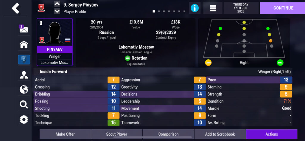 FM26 Mobile is its own beast compared to the PC version: with fewer loaded leagues, limited scouting reach, and a more streamlined match engine, you can’t rely on the same depth of hidden data or complex training setups. Mobile saves reward players who are immediately useful, but also have room to grow. Because of that, wonderkids who are outstanding now and have high potential matter even more. The mobile-only database means that some players who might be secondary on PC become frontline stars on Mobile and vice versa, depending on what their prevalent attributes are.