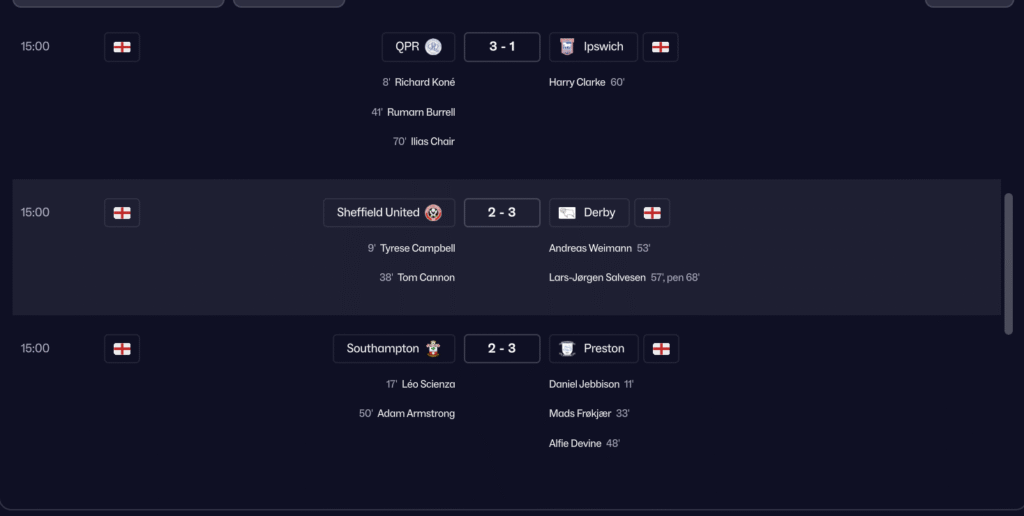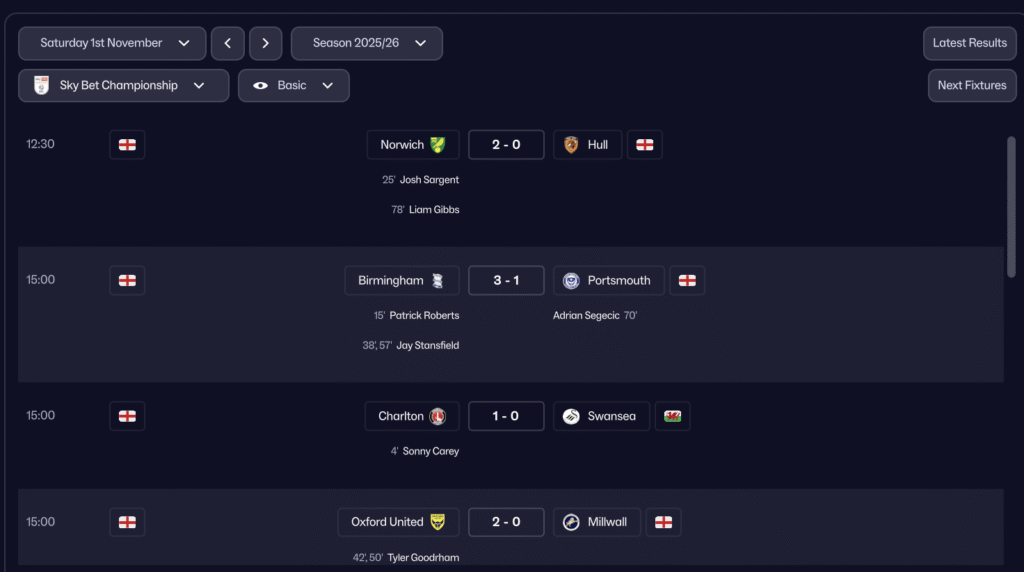 In the Championship, there was no shortage of storylines either. Leicester and Blackburn played out a 1–1 draw to open the weekend before Hollywood Wrexham cruised past the previously unstoppable Coventry 2–0. Birmingham impressed with a 3–1 win over Portsmouth, while Norwich, Oxford United, Charlton, and QPR all won without conceding. Derby produced the comeback of the weekend, turning a two-goal deficit into a 3–2 win at Sheffield United, and Preston matched it with a chaotic 3–2 away win at Southampton. West Brom also grabbed a late winner through Karlan Grant’s penalty, while Watford, Stoke, and Middlesbrough all shared points in one-goal games. A proper EFL weekend. Scrappy, dramatic, and relentless.