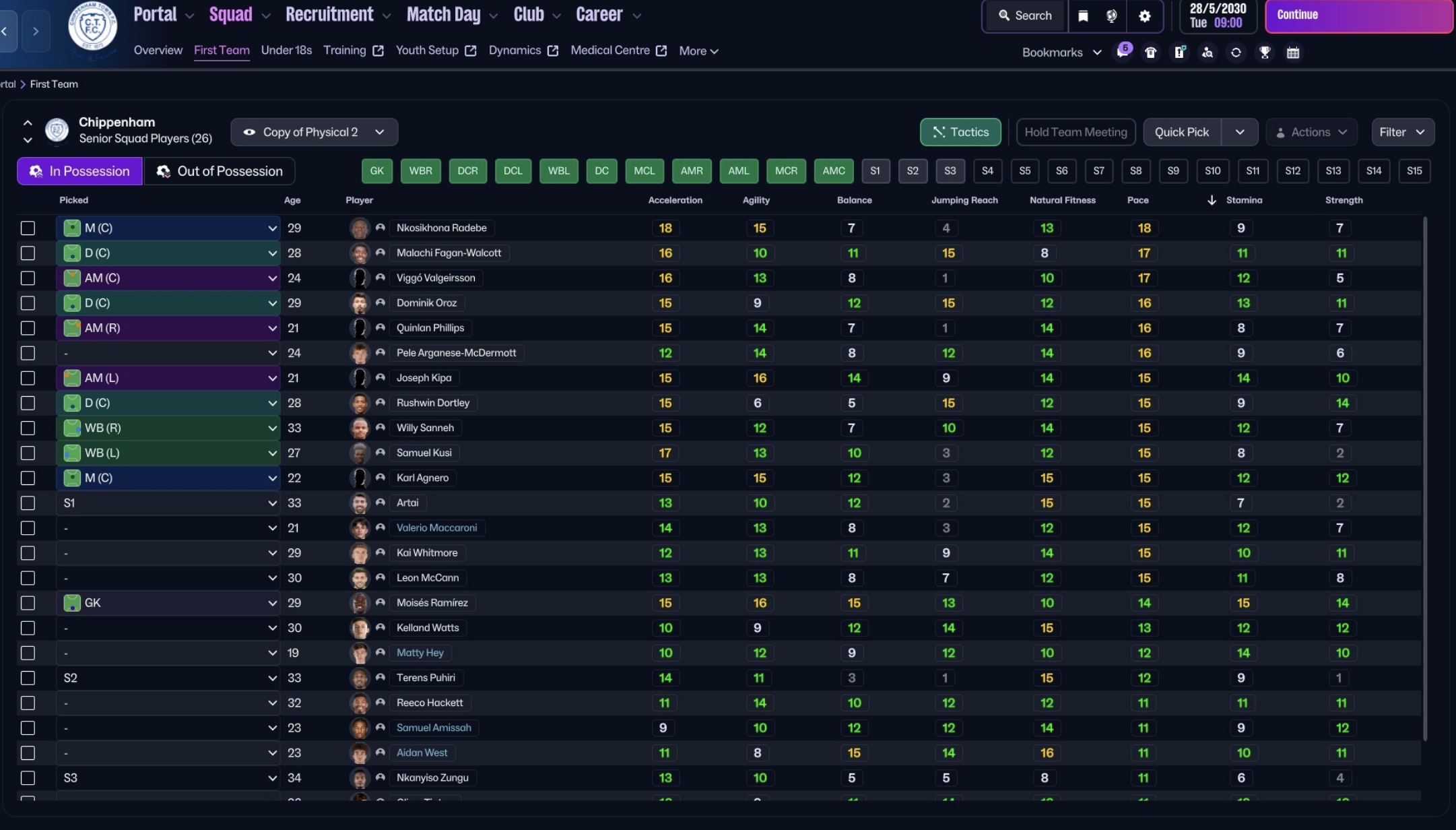 The question heading into FM26 was obvious: has anything actually changed? Baz’s experiment sets out to answer that with something incredibly Football Manager: a gloriously broken save. Building a team designed to fail… except for pace. Baz takes Chippenham Town, bottom of the National League South, the lowest playable tier in FM26 without custom databases, and replaces the entire squad with players selected on one criterion only: at least 15 pace and 15 acceleration. That’s it. Technical ability? Mostly awful. Mental attributes? Weak. Finishing? Often single digits. Composure? Laughable. If a player couldn’t run fast, they didn’t get in.