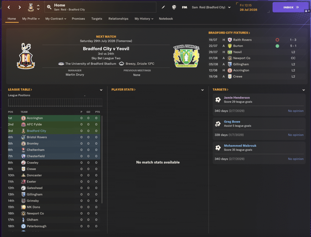 Running transfers and staff for three clubs at once is absolute chaos, but it’s been brilliant. Optimising the backroom staff for one team is fun – doing it for three at the same time is next-level. I’ve even been able to strengthen Halifax and Bradford by loaning players between my clubs. My ultimate goal is to turn Yorkshire into a footballing powerhouse, and the only way that happens is if all the teams work together.There’s only been one downside so far. That dreaded day in July when you have to sort out staff contracts. Renewing 50 deals in one go is about as fun as a pre-season friendly in the pouring rain. But the rest of the experience has been so enjoyable, it’s given me a whole new lease of life for FM – especially in a year without a new game to look forward to.
