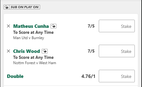 The Grimsby result has actually provided the odds with a small boost, meaning there is even more valuable to be had on this double. It is hard to see United not bouncing back after a result like that, and if anyone is due it is Cunha, not least because of his shot volume and Burnley’s last away outing. Being one of the top 5 shot takers in the premier league will often lead to returns, and with an xG of 0.8 already this season, including a game against the best defence in the league, the stats also back up a return. Burnley sit on the bottom 6 for xGA and Sunderland were unlucky not to have scored given they had a higher xG than Burnley in that game at 1.12.