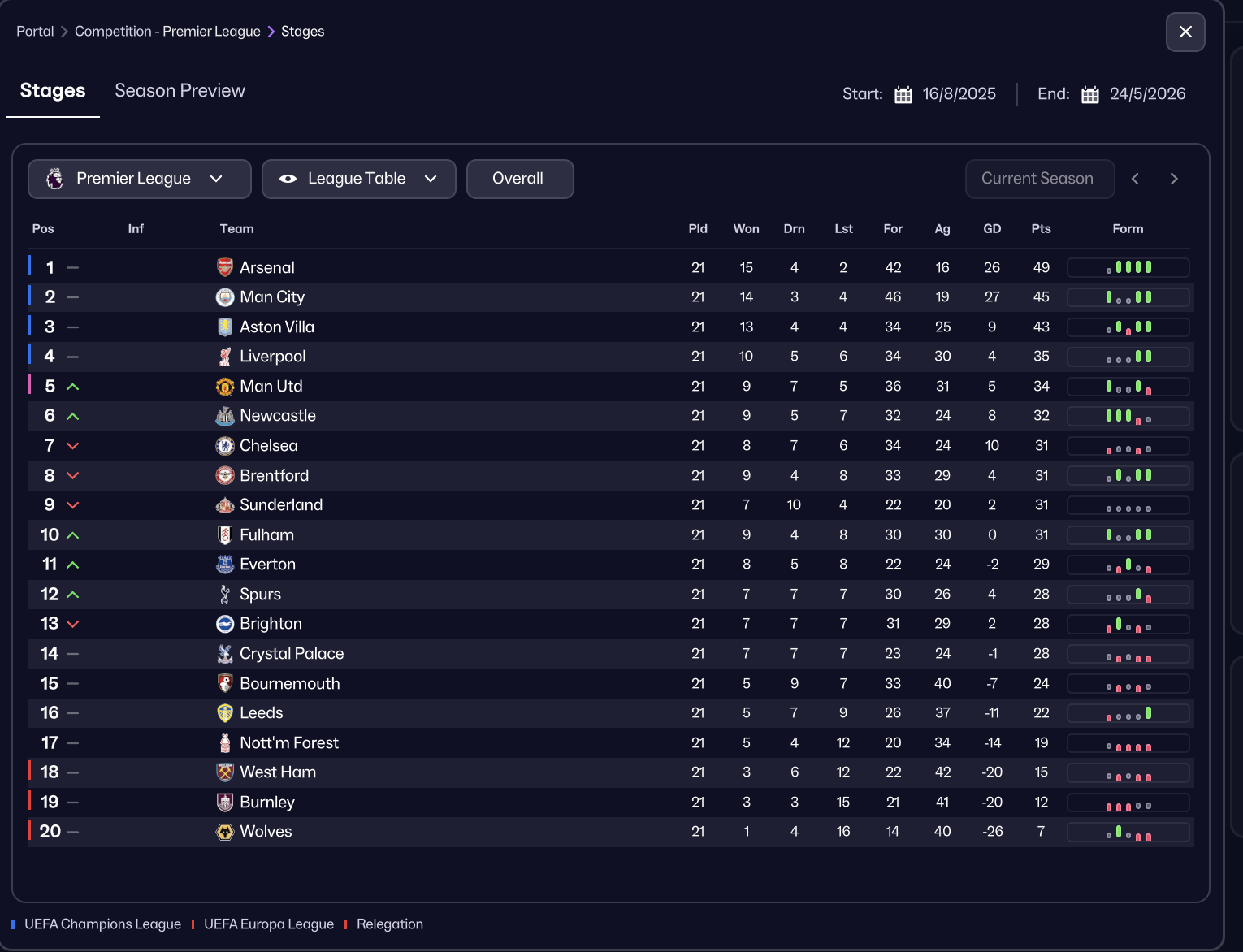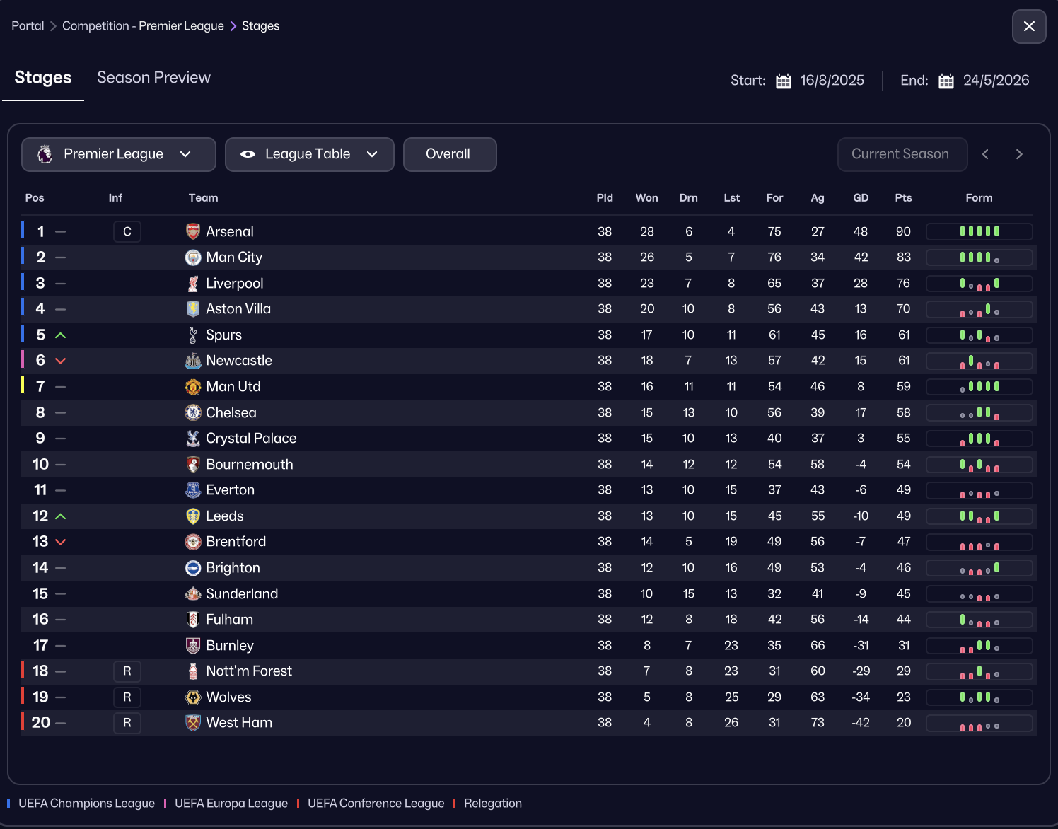 Arsenal easily win the title. It’s incredibly close outside the top four in the UCL/Europa League spots. Leeds end up comfortably surviving in the end. It runs to the wire between Burnley and Forest. Wolves overtake West Ham, with the East London club running dangerously close to the Derby points record.