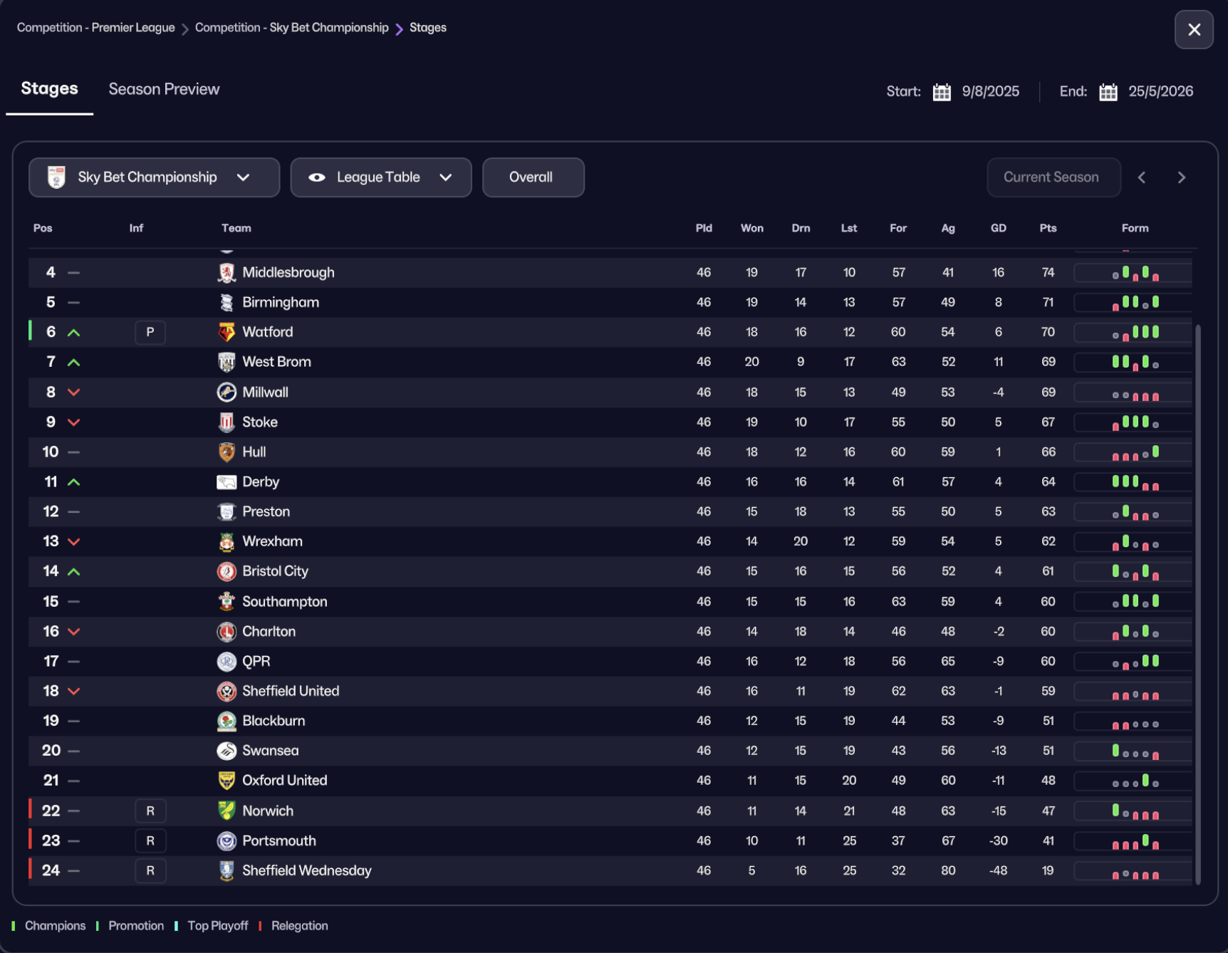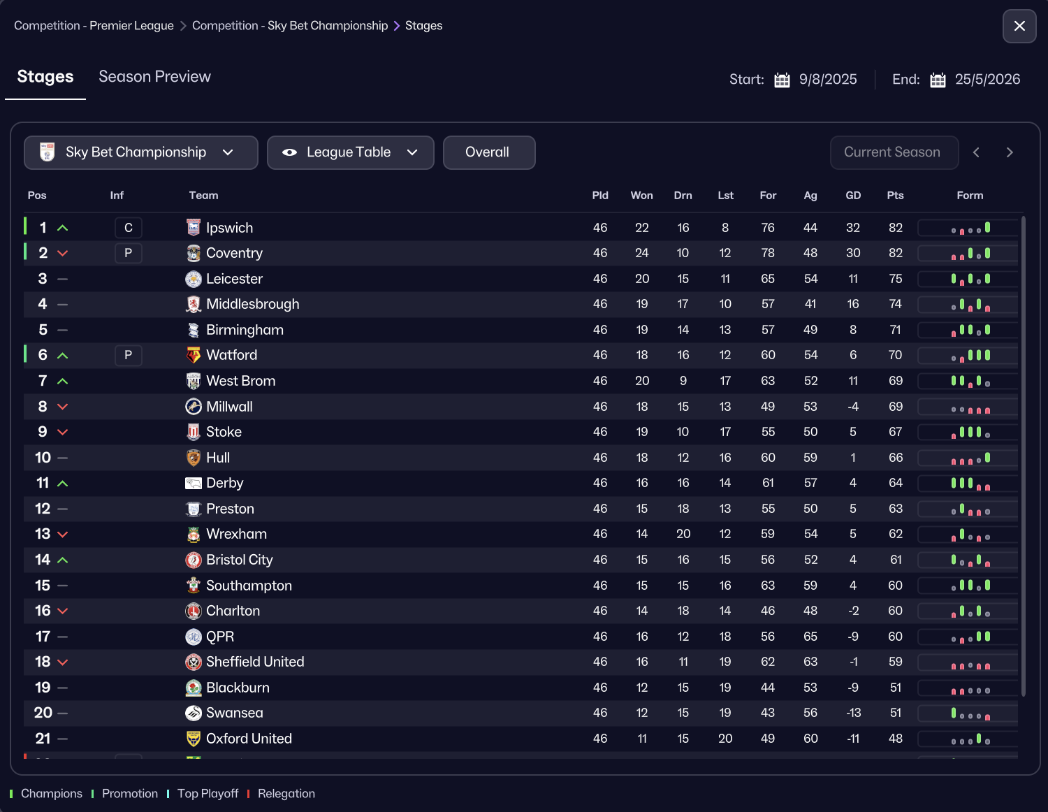 Ipswich, Coventry and Watford promoted with Norwich, Portsmouth and Sheffield Wednesday relegated!