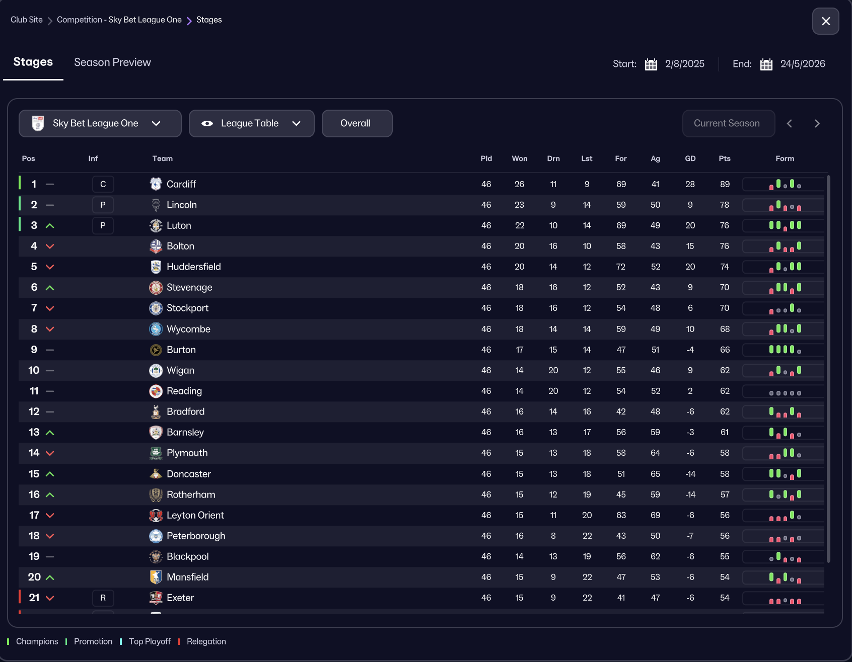 Cardiff, Lincoln and Luton promoted with Exeter, Wimbledon, Northampton and Port Vale relegated.