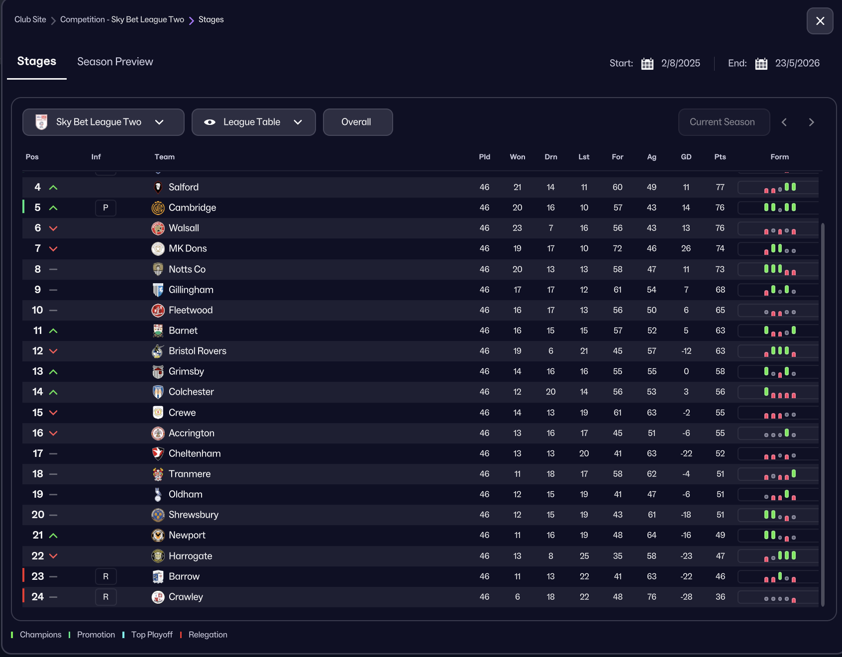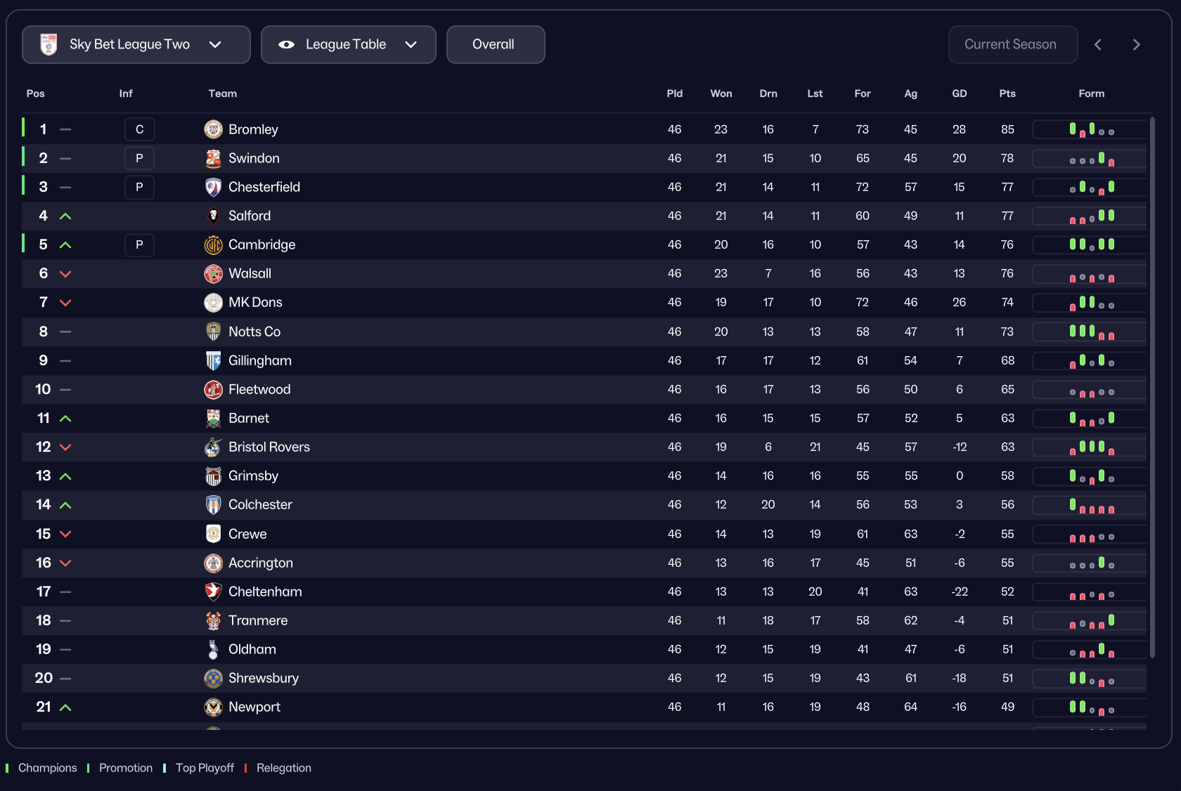 Bromley, Swindon, Chesterfield and Cambridge promoted with Barrow & Crawley relegated