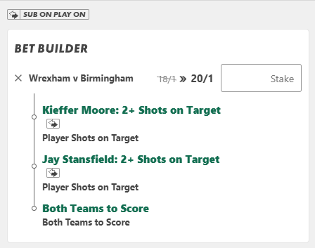 We really like Kiefer Moore & Jay Stansfield both 2 have 2 shots on the target and both teams to score at 20/1!