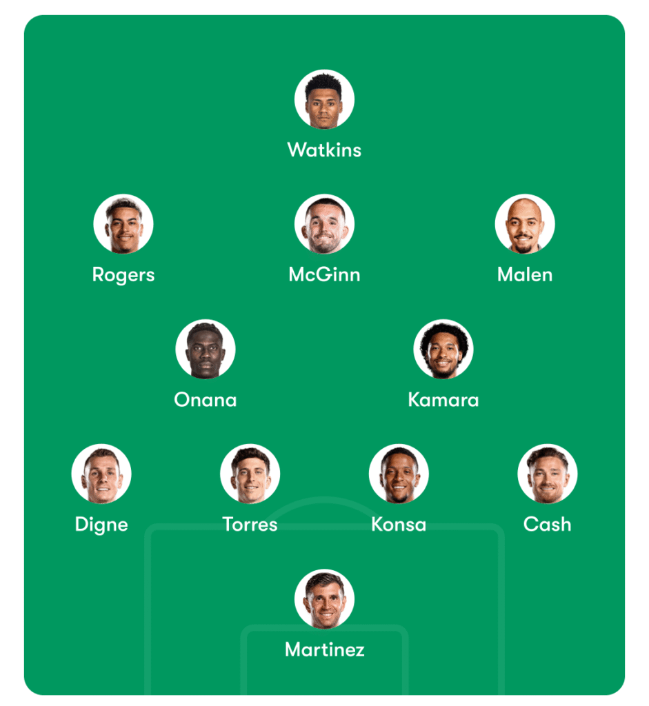 Malen seems to have finally found his way in to Emery’s preferred starting XI. He started up front in the win over Spurs but he will shift back to RW with Watkins returning to the starting XI this week. Guessand has started from time to time but Malen is ahead in the pecking order currently.