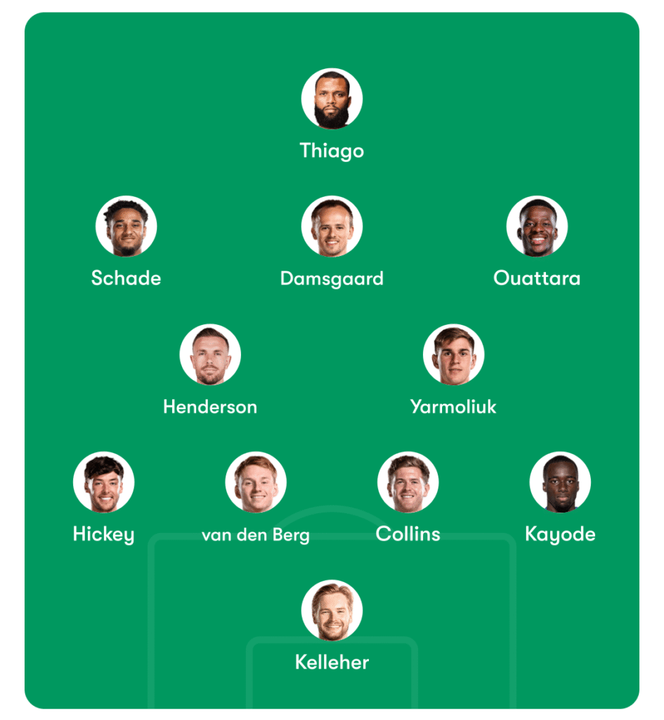 The 4-2-3-1 is working tremendously with Henderson and Yarmoliuk in midfield with Damsgaard helping to do some midfield defensive duties while also being the link from midfield to the forwards and Brentford’s chief creator.