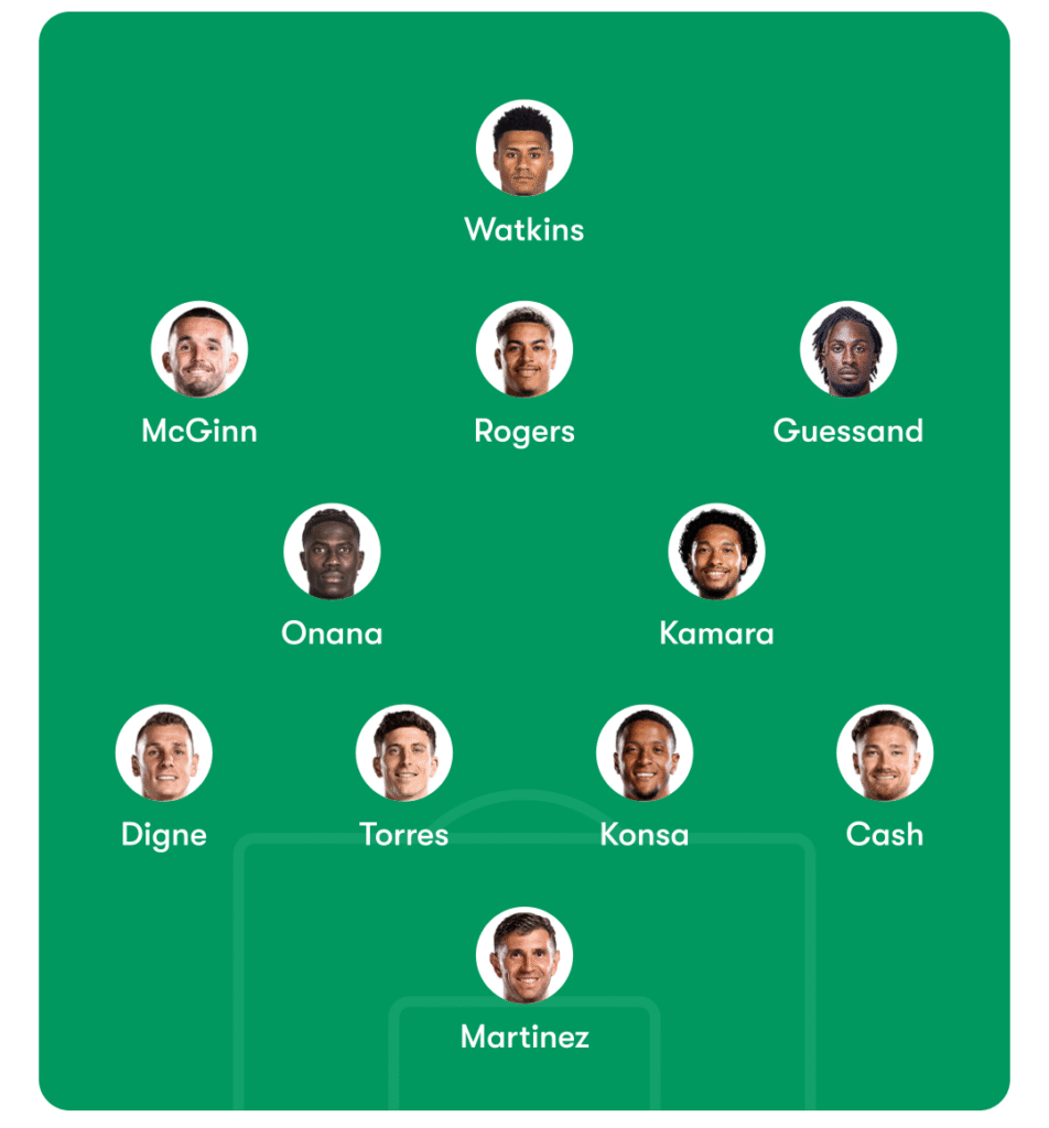 Watkins is now fit and started against Manchester City in the 1-0 win. Guessand was substituted on for Buendia not Malen so it would stand to reason Guessand will start.