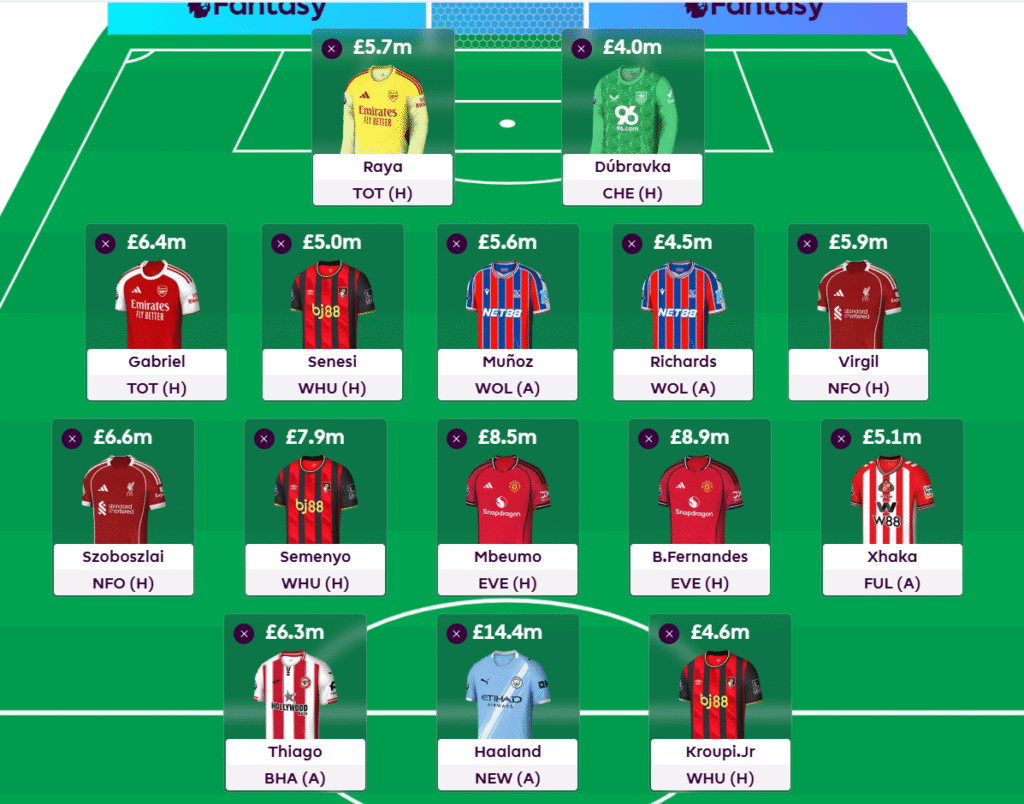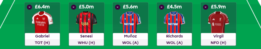 We have also left an extra £1m in the bank. This is so we can flexibly target a 3rd Arsenal, Liverpool, United or Palace player in the following gameweeks, dependent on which team looks sharpest. Be it a 3rd Arsenal defender, Mateta or Sarr, Ekitike etc.