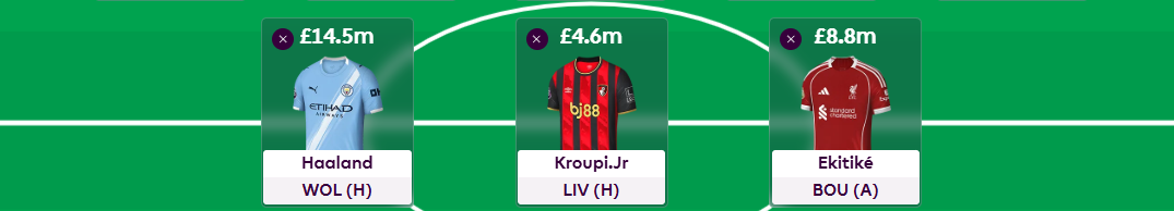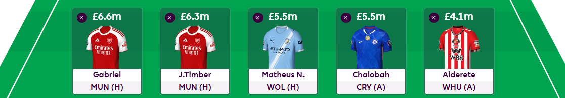 Now this is where we’ve left ourselves with some flexibility. Nunes was left out of the City squad who lost to United due to flu. What helps his case here is that it did not go well without him. More importantly however, is what his place in the team allows us to do. If City’s defence continues to perform poorly, then his price tag allows for an easy one-transfer move to Daniel Munoz once he returns from injury. However, given how much cash this line-up keeps in the bank, if City sort it out and the back, and get back on track against quite frankly 2 of the worst teams in the league at the moment in Wolves and Spurs, then we will keep Nunes, upgrade Alderete and go to a 5 at the back.