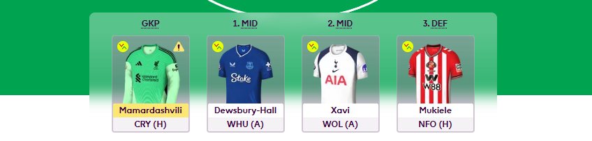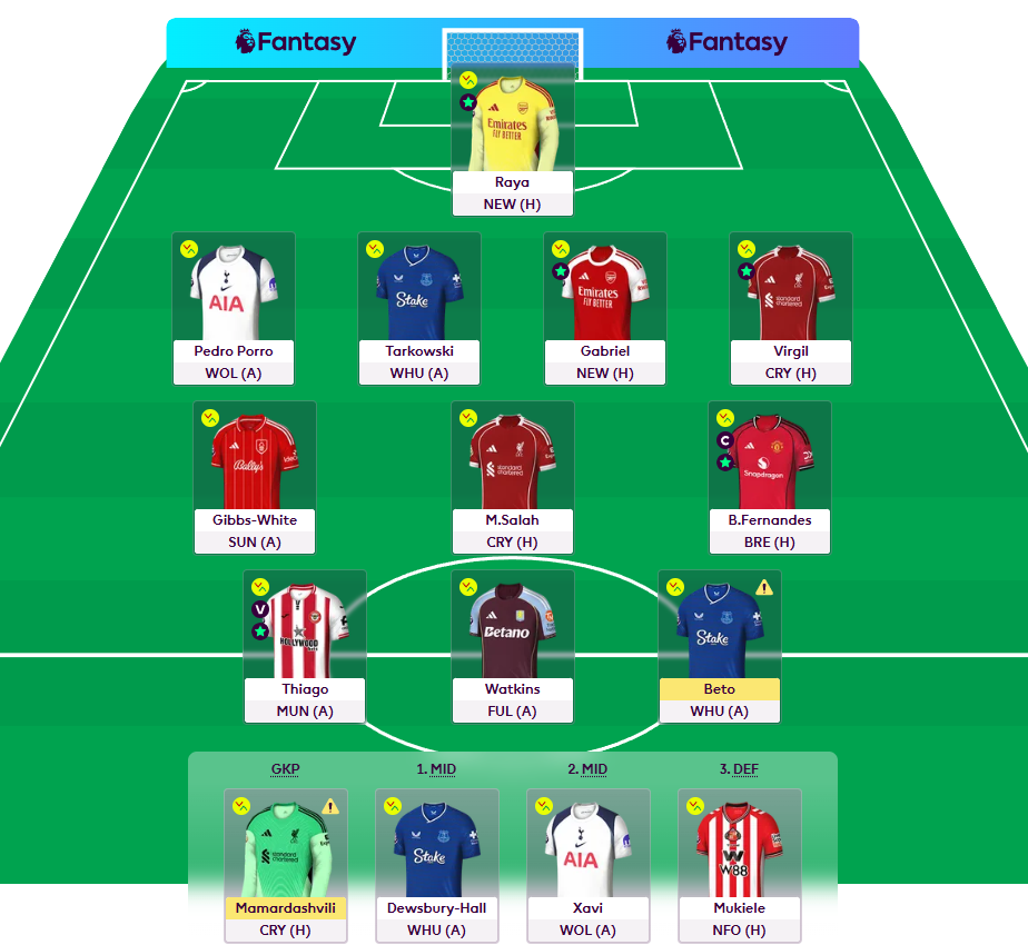 Kept it nice and simple with some more Everton coverage. If Beto is injured, we will likely go ahead and start KDH. Simons was a tough omission given the fixture, but I honestly just don’t trust Spurs enough yet to double up. Mukiele is in for obvious reasons, but the Forest fixture scares me a bit considering Forest’s recent form and the hiding Sunderland’s defence just took.