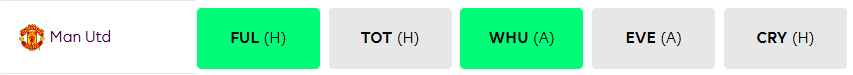 Man-United are arguably the form team in the league right now, knocking off City and Arsenal in back-to-back games and scoring 5 goals in the process. They now take this sparkling form into a fixture stretch littered with bad defences, particularly their next 3 games. Much like Cheslea it is not a matter of if we get United assets, but which ones.
