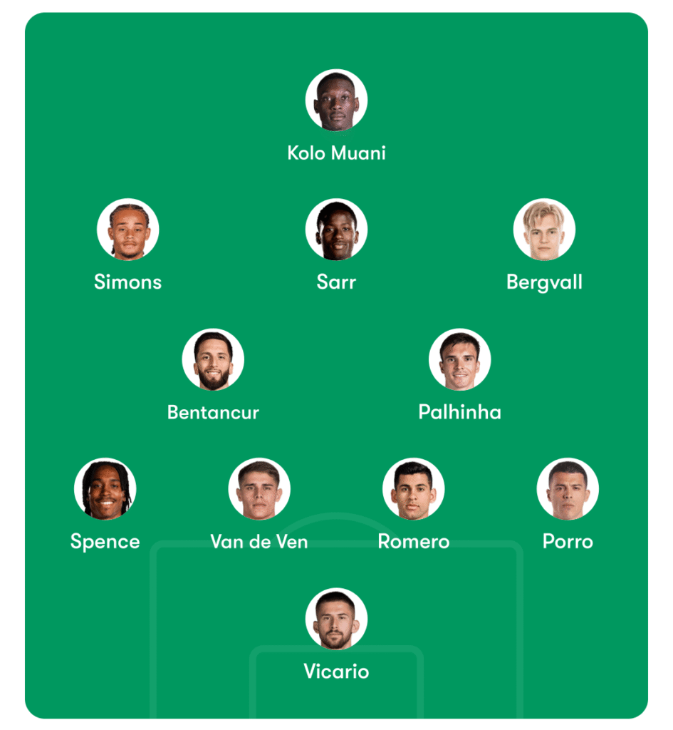 Kudus is clearly a game-time decision and those usually do not end up with said player starting, so I do not expect the Ghanaian to do so. Simons would start off the left with Bergvall potentially moving to the right. Sarr could also play in a wider position if Bergvall was to stay central.
